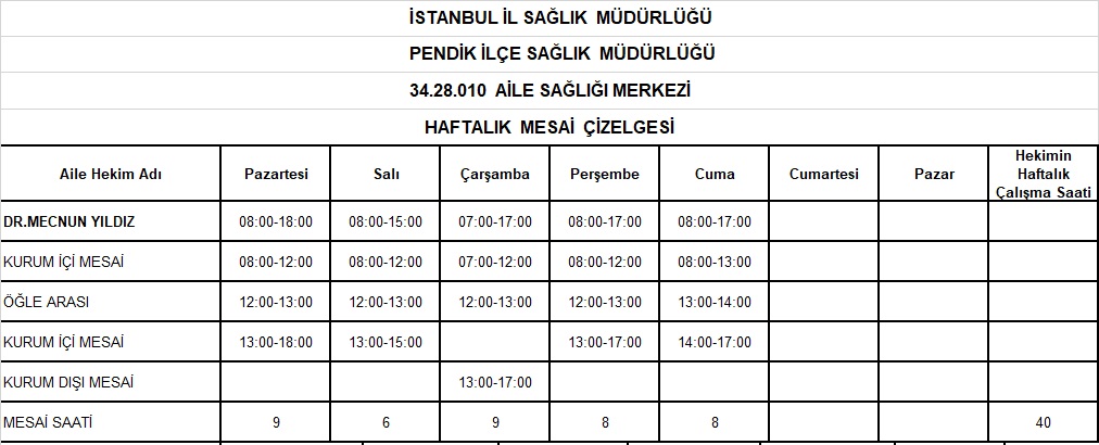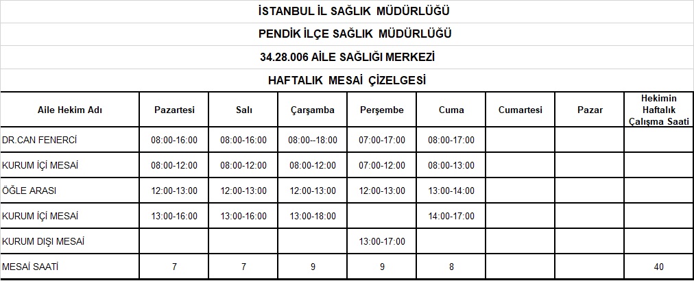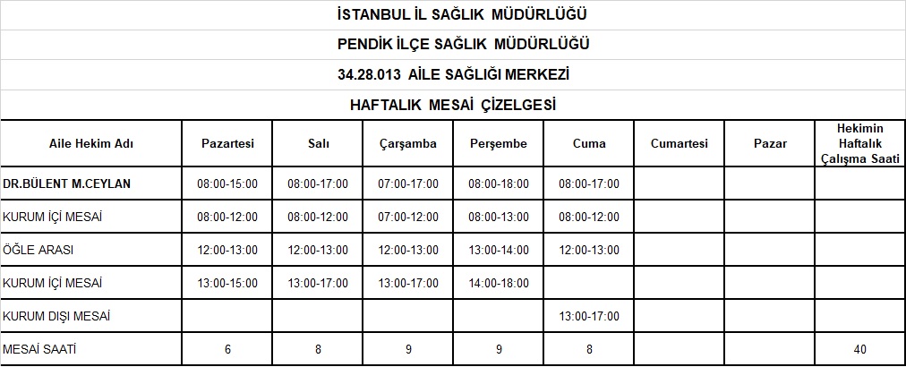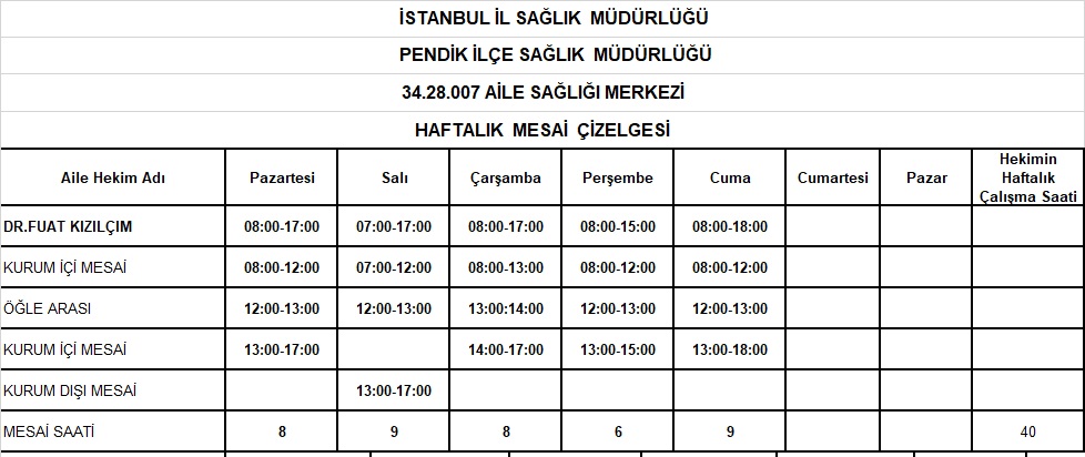 Çalışma Saatlerimiz